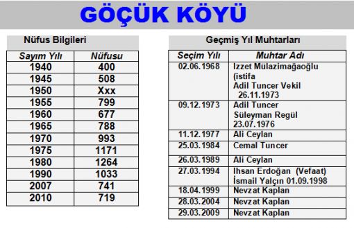 Seçildikleri yıllara göre köy muhtarları ce Köy Nüfusu: